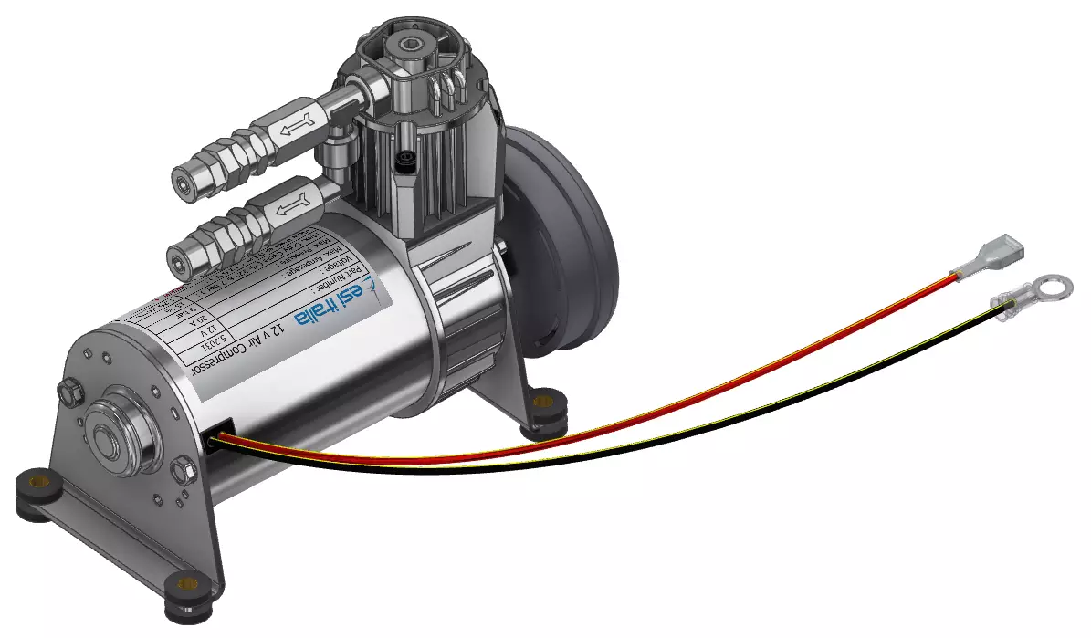 Basic 12 V Kompressori käyttökytkimellä ja relesarjalla. Manuaalinen ilmakompressorisarja, joka mahdollistaa mukautetun täyttöpaineen jousituksessa. Kuva viitteellinen.