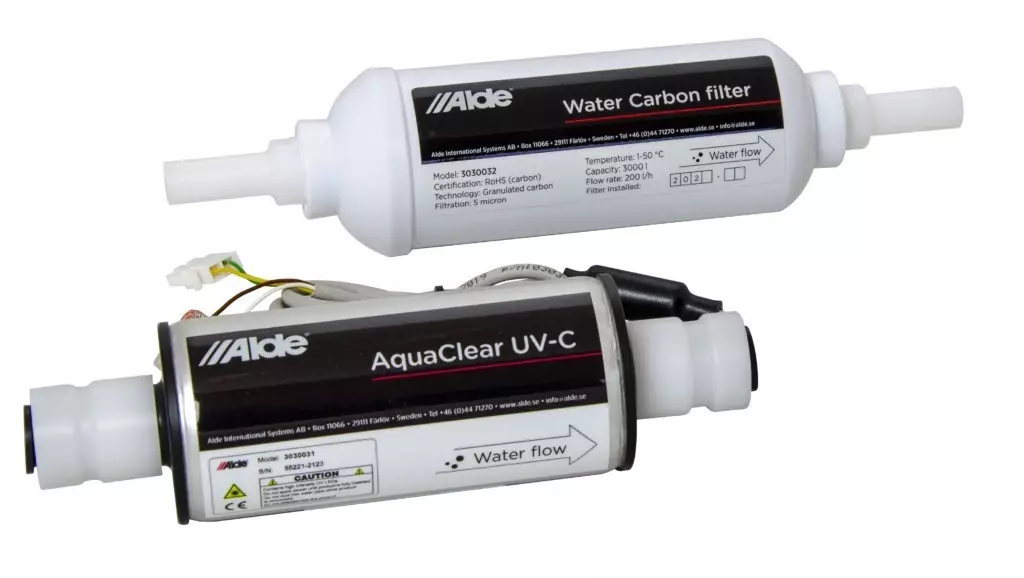 Alde AquaClear UV-C on veden desinfiointijärjestelmä, joka puhdistaa veden ultraviolettivalolla, joka tulee erityisistä LED-