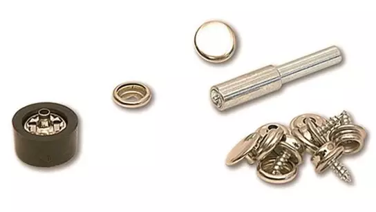 Snap-setti on 8 kappaleen setti nikkelöityjä ruuvinkiinnittimiä.
