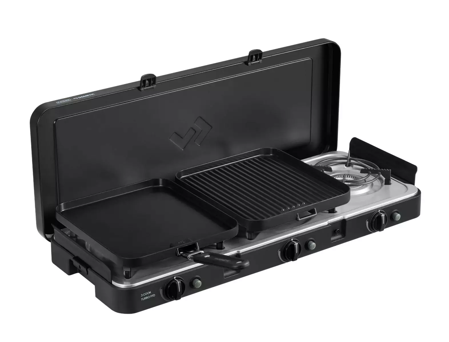 3 Cook Turbo FFD on monipuolinen ja luotettava keitin, joka täyttää kaikki kulinaariset tarpeesi.Kolmella korkealaatuisella polttimella varustettu kaasuliesi tarjoaa runsaasti keittotilaa, mikä sopii täydellisesti useiden ruokien valmistamiseen kerralla - ihanteellinen perheaterioihin tai vieraiden kestitsemiseen.Tukeva rakenne ja kestävät materiaalit takaavat pitkäaikaisen suorituskyvyn, ja tyylikäs muotoilu tuo ripauksen eleganssia mihin tahansa keittiöön.Kullekin polttimelle on omat säätönupit, joten täydellinen keittolämpötila voidaan saavuttaa säätämällä liekin voimakkuutta tarpeidesi mukaan. Paistatpa sitten pihvejä, paistat vihanneksia tai valmistat herkkiä mereneläviä, 3 Cook Turbo tuottaa tasaisen, sopivan lämmön, joka takaa erinomaisen lopputuloksen jokaisessa ruokalajissa, joka kerta. 3 Cook Turbo Deluxe FFD sisältää kolme kattilatelinettä, tuulisuojat, keraamisesti pinnoitettu tasainen levy ja kylkilautanen, jossa on irrotettava kahva helppoa käsittelyä varten.Kumijalkojen ansiosta liesi pysyy tukevasti millä tahansa pinnalla, mikä estää liukastumisen ruoanvalmistuksen aikana. Kolmipolttimokokoonpanostaan huolimatta tämä kaasuliesi on kompakti ja kannettava, ja se on helppo pakata sisäänrakennettujen kahvojen ja mukana tulevan kantolaukun avulla.Tekniset tiedot: - Grillin mitat: 2 x 25 x 27 cm / 1 x 15 x 27 cm- Tuotteen mitat: 72 x 30,5 x 9 cm- Paino: 9 kg- Lämmön ulostulo: 2 x 2,2 kW / 1 x 1,5 kW- Paine: 28-30/37/50 mBar- Sisältää: kattilatelineet, litteä lautanen, uurrettu lautanen, tuulilasit, irrotettava kahva ja kantolaukku.