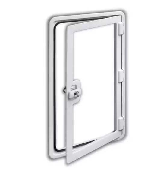 Luukussa on myös turvallinen lukitusjärjestelmä. Kestävä huoltoluukku ruiskuvalumenetelmällä valmistetusta ASA-muovista. Nopea ja helppo asennus
