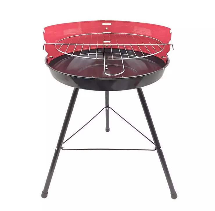 Kompakti emaloidusta teräksestä valmistettu hiiligrilli, jonka grilliritilää voidaan säätää kolmeen eri korkeuteen.