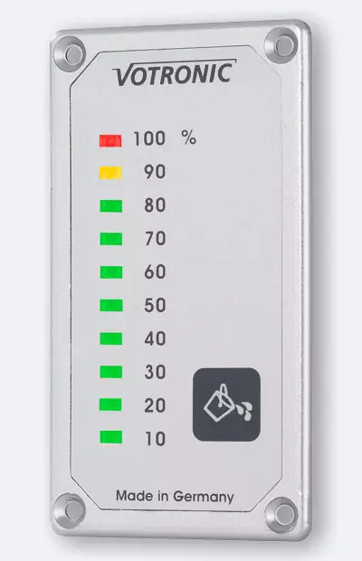 Likavesisäiliön näyttöpaneeli Votronic 5313 on tarkka ja luotettava mittaristo, joka mahdollistaa harmaavesisäiliön täyttöasteen seurannan huomattavasti tarkemmin kuin perinteiset 5-tasoisiin mittareihin perustuvat näytöt. Sen avulla jäteveden määrän hallinta on entistä helpompaa ja turvallisempaa.