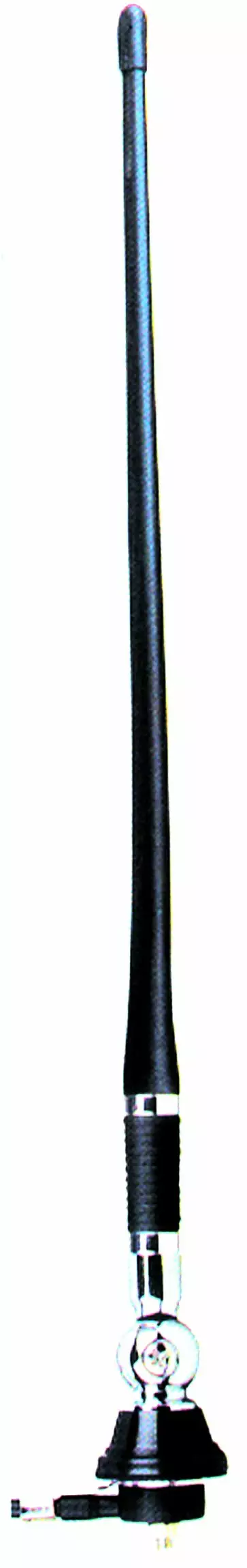 Erittäin taipuisa ja kestävä isompi kumipatukka antenni. Pituus 410mm, kaapelin pituus 1,4 m. Kromattu pallonivel, kääntyy 0-180 astetta.