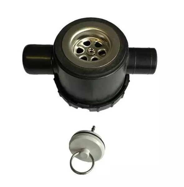 Vesilukko voidaan helposti avata puhdistusta varten. Kromattu metalliseula ja tulppa.