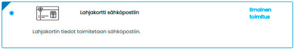 - Lahjakortilla ei saa alennusta toimituskuluista.