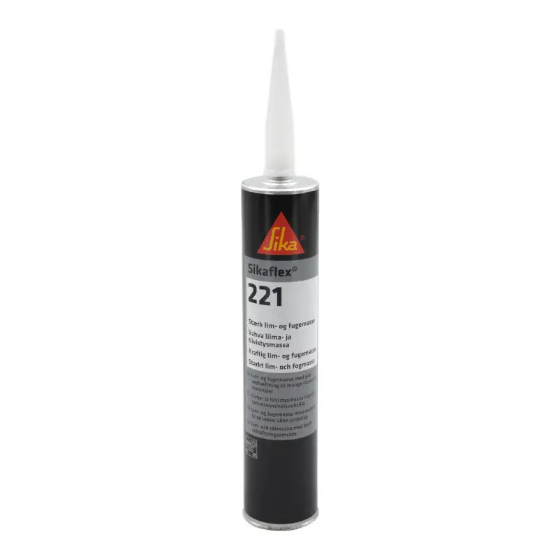 Sikaflex-221 on korkealaatuinen, monikäyttöinen ja valumaton 1-K polyuretaaniliima- ja tiivistemassa, joka kovettuu ilmankosteudesta ja muodostaa kestävän elastomeerin.Se liimaa ja tiivistää luotettavasti useimpia materiaaleja muodostaen pysyvästi elastisen, tiiviin ja lujan liitoksen.