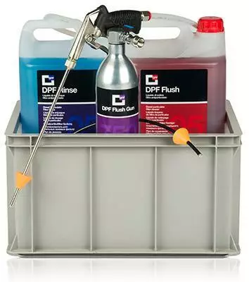 Huuhteluaine: poistaa hiili- ja nokijäämät dieselin hiukkassuodattimelle tehdyn puhdistusaine käsittelyn jälkeen. Ruiskusarja: sisältää kaksi ruiskutuspäätä joustavan sekä kovan, 750 ml säiliön ja ruiskutuspistoolin.