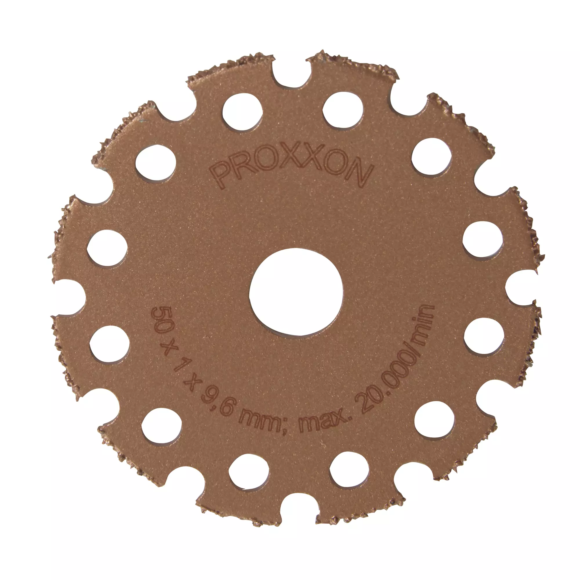 Hionta-/katkaisulaikka, volframikarbidia Vähemmän ylikuumenemista jäähdytysreikien ansiosta. Puun ja kipsin leikkaamiseen. Ø 50 mm, keskireikä 10 mm.