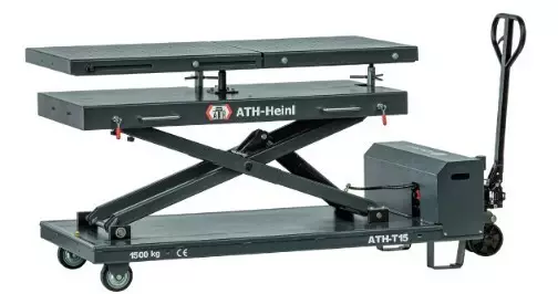 Akkunostin sähkö- ja hybridiautoille. Soveltuu myös muille ajo- neuvoille raskaiden komponenttien laskemiseen ja nostami- seen. Nostotaso jaettavissa kahteen osaan 40 % / 60 %.