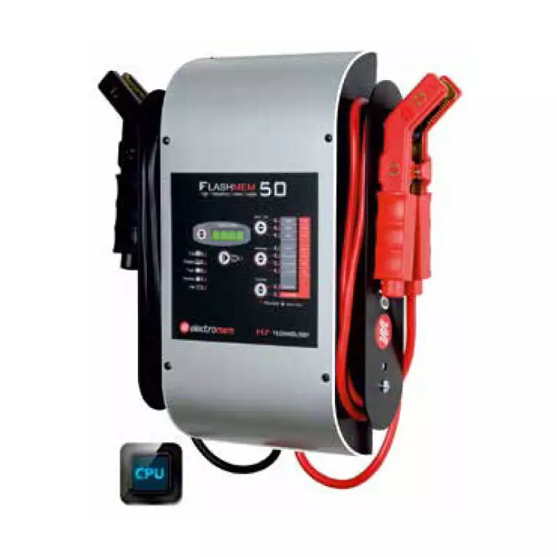 Aammattimainen laturi yleispätevään lataukseen, virransyöttöön, ylläpitoon ja kaikkien ajoneuvojen uudelleenohjelmointiin. Täysin turvallinen FLASH-MEM -linja takaa enemmän hallintaa ja suojausta: napaisuussuojaus, oikosulkusuoja, jännitevirheiden havainto ja ylikuormitussuoja. FLASH-MEM 50 –mallissa on 50 A jatkuva virransyöttöominaisuus.
