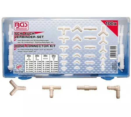 BGS Letkuliitoslajitelma 100-osaa T-liitin (25 kpl): 10 kpl 3 mm 5 kpl 5 mm 3 kpl 6 mm 3 kpl 8 mm 2 kpl 10 mm 2 kpl 12 mm - L-liitin (25 kpl) 10 kpl 3 mm 5 kpl 5 mm 3 kpl 6 mm 3 kpl 8 mm 2 kpl 10 mm 2... Lue lisää