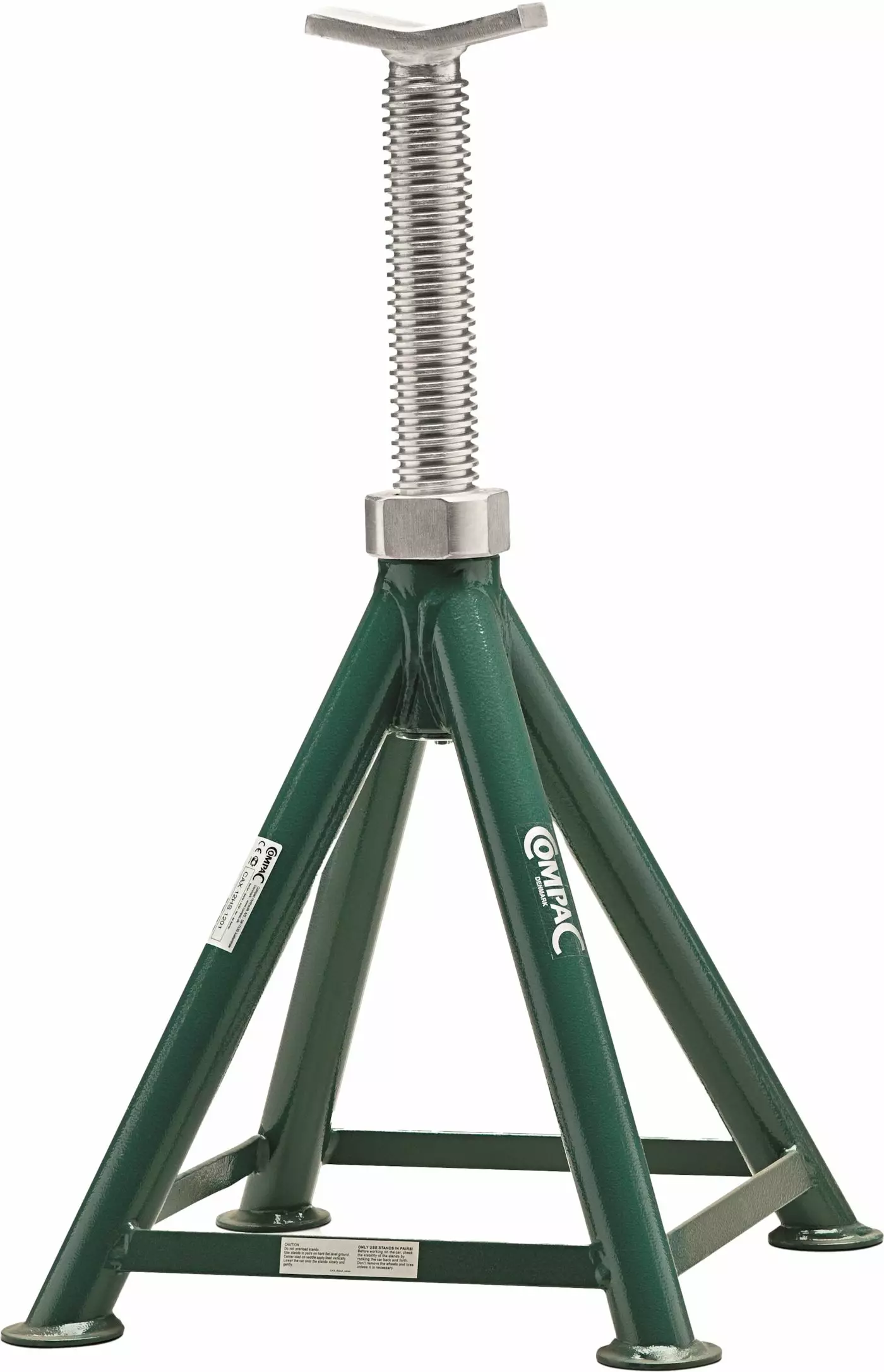 Kokonaan hitsattu umpimetallinen 12 tonnin akselipukki 505-740 mm toiminta-alue Jalkojen väli 395 mm, paino 15 kg Portaaton korkeussäätö kierteellisellä tangolla