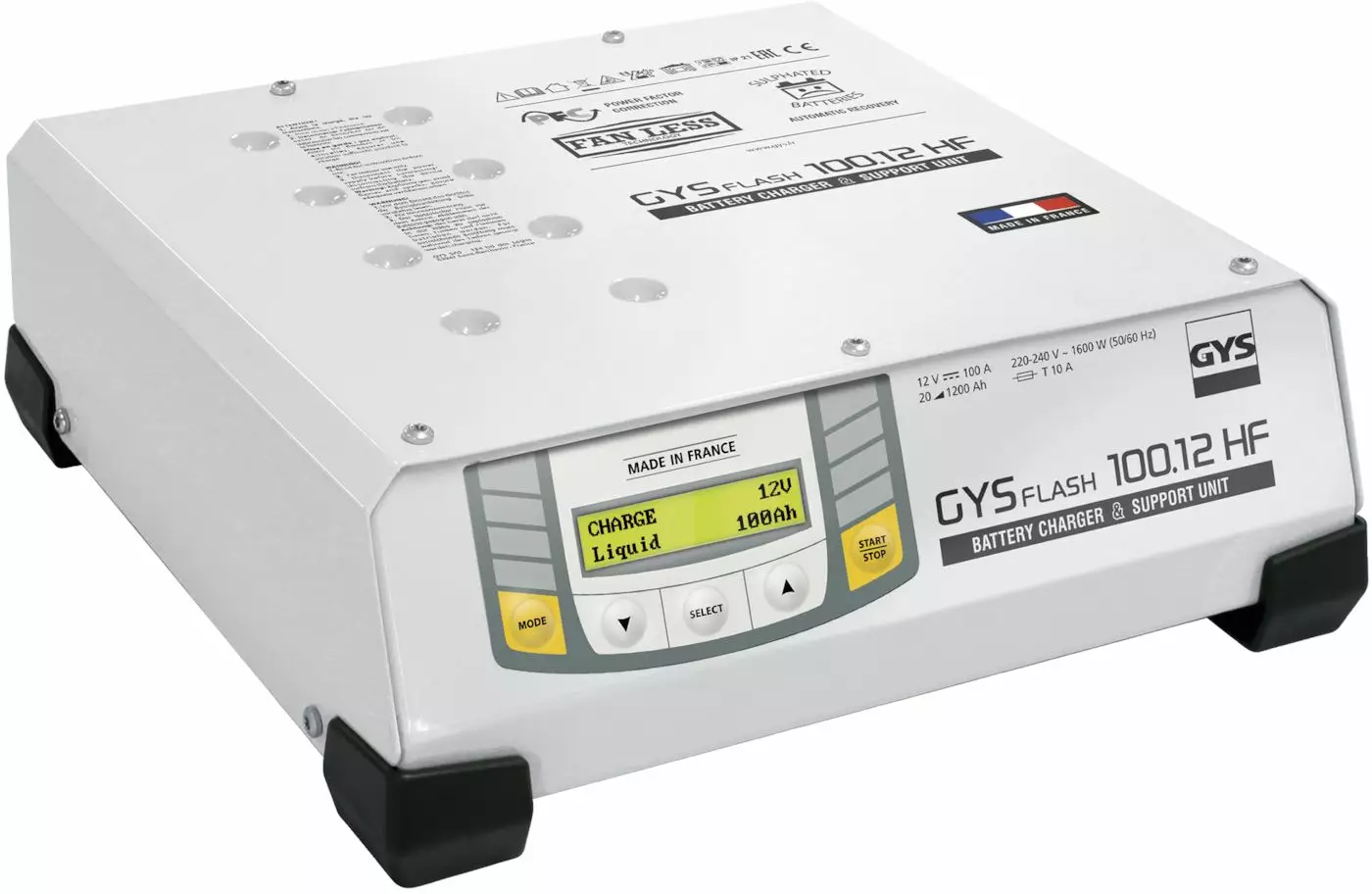 Invertteriteknologialla toteutettu akkulaturi/virtalähde. Toimii esim. laturina, diagnostiikan aikana virransyöttönä ajoneuvolle, akunvaihdonaikaisena virransyöttönä ja virtalähteenä. 12 V, 20-1200 Ah, max 100 A. 5 m pitkät syöttökaapelit 16 mm². Autom. uudelleenkäynnistys ja elvytys sulfatoituneille akuille. CE-hyväksyntä.