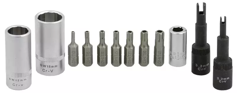 -materiaali kromi-vanadium -terästä -hylsy- ja kärkisarja ilmastointilaitteiden huoltoon, mm. muovisten venttiilikorkkien ja -sisusten irrottamiseen -sarja sisältää --2kpl erikoismallista... Lue lisää
