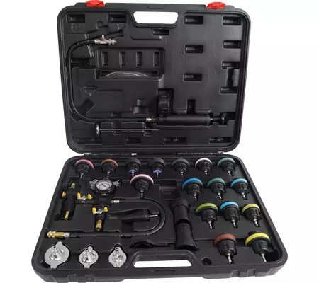 Jäähdytysjärjestelmän Testauslaite BGS - 1 x pumppu - 1 x lämpömittari - 1 x täyttöputki - 1 x täyttökorkkia alipainemittarilla - 2 x Jäähdyttäjän korkkia - 3 x Jäähdyttäjän korkkia... Lue lisää