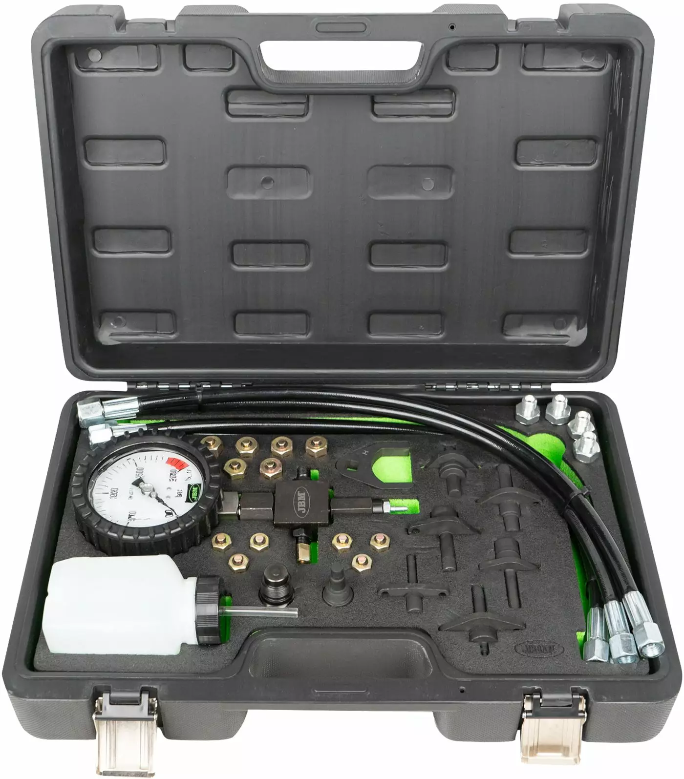 Välttämätön työkalu dieselkäyttöisten Common Rail -järjestelmien korkeapaineisen polttoainepiirin tarkkaan mittaamiseen. Lukema-asteikko 0-2000 bar. Testerissä on sisäänrakennettu paineenrajoitusventtiili, joka rajoittaa maksimipaineen noin 1300 bariin pumpun vaurioitumisen estämiseksi. Testeri on varustettu neljällä joustavalla letkulla, jotka mahdollistavat liittämisen vaikeapääsyisiin paikkoihin. Letkuliittimet: M12x1,5 (x2), M14x 1,5 (x2).