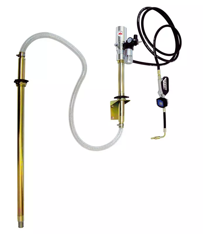 Öljynjakelusarja tynnyrille - Paineilma-öljypumppu 3:1 - Seinäkiinnike pumpulle - Imuputki tynnyriin - 4 m jakeluletku - Digitaalinen öljymittari, automaattisuutin