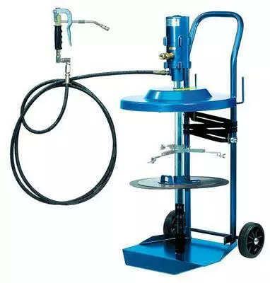 Rasvauslaite 50 kg Astioille Sisältää: Paineilmarasvapumppu 50:1 Korkeapaineletku Vaunu Pölykansi, astiankiinnityskehikko ja seurantakansi Rasvapistooli ja z-nivel