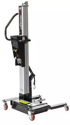 Paineilmatoiminen rengasnostin helpottamaan renkaiden nostamista ja laskemista. Nostokapasiteetti: 65 kg Nostokorkeus max. 1200 mm Tilavaade ylöspäin: 2800 mm Paineilmatarve: 6 - 12 bar Lukittavat... Lue lisää