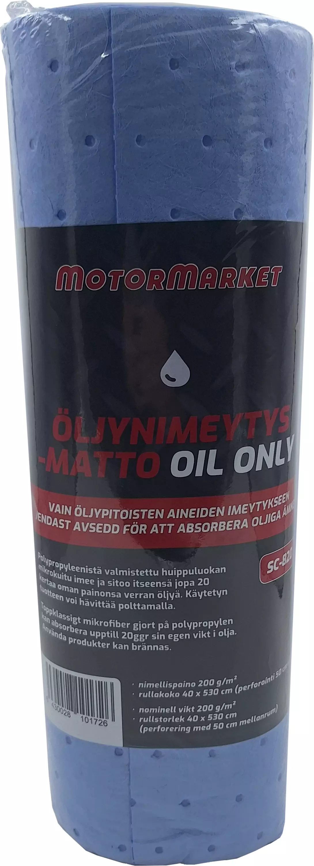 Vain öljypitoisten aineiden imeytykseen. Polypropyleenistä valmistettu huippuluokan mikrokuitu imee ja sitoo itseensä jopa 20 kertaa oman painonsa verran öljyjä. Käytetyn tuotteen voi hävittää polttamalla (tarkista määräykset).