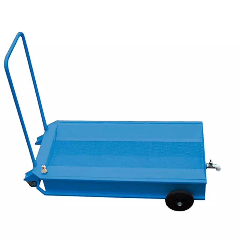 Matala jäteöljyvaunu Kuorma-autojen, linja-autojen ym alle. Helposti liikuteltava. Tilavuus 95 L Poistohanallinen Ulkomitat 1500 x 750 x 260 mm Paino 45 kg