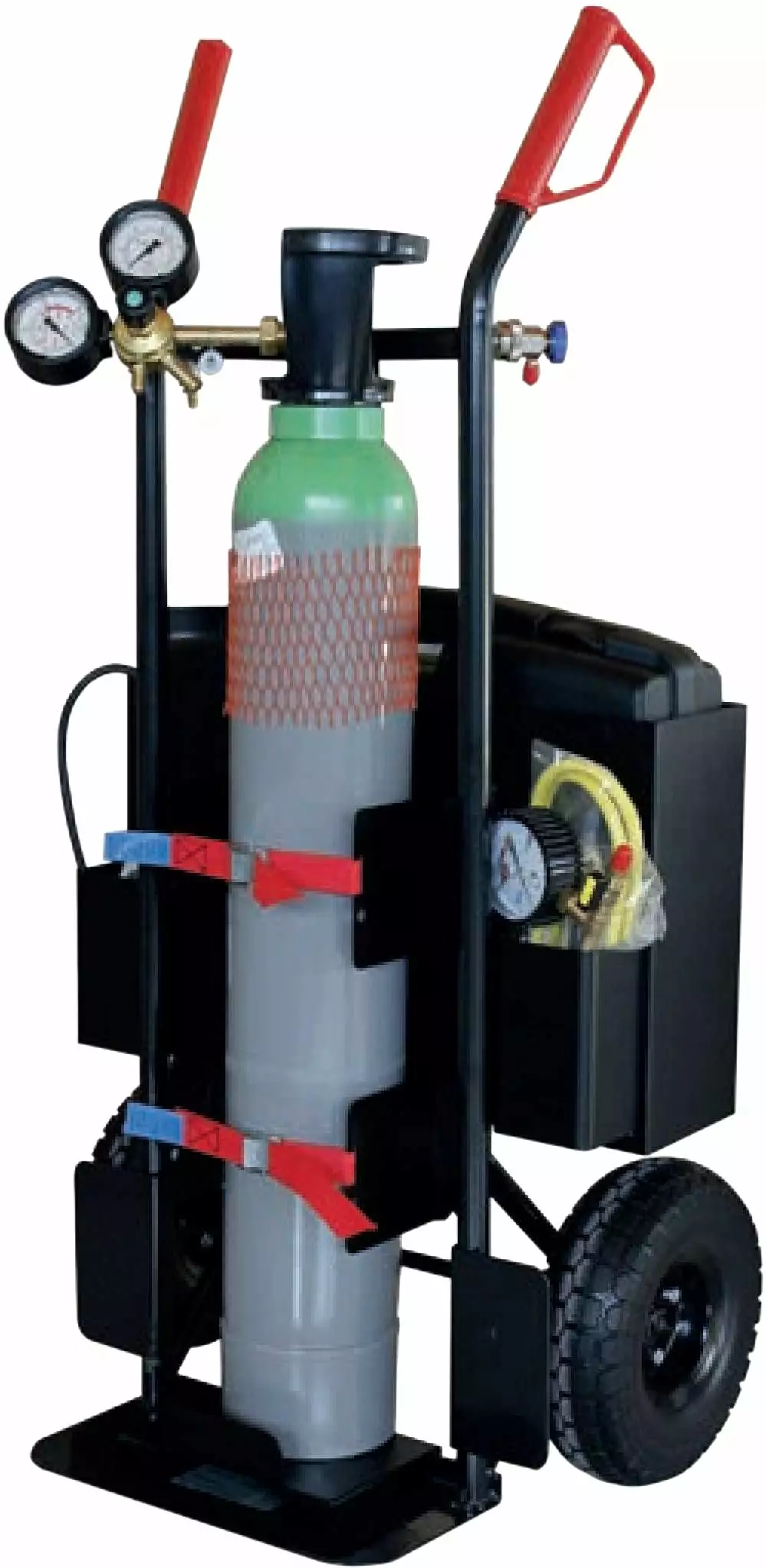 Kätevä typpitestisarja monipuolisella pullokärryllä ja vuodonilmaisimella ilmastointijärjestelmien vuotojen etsintään.