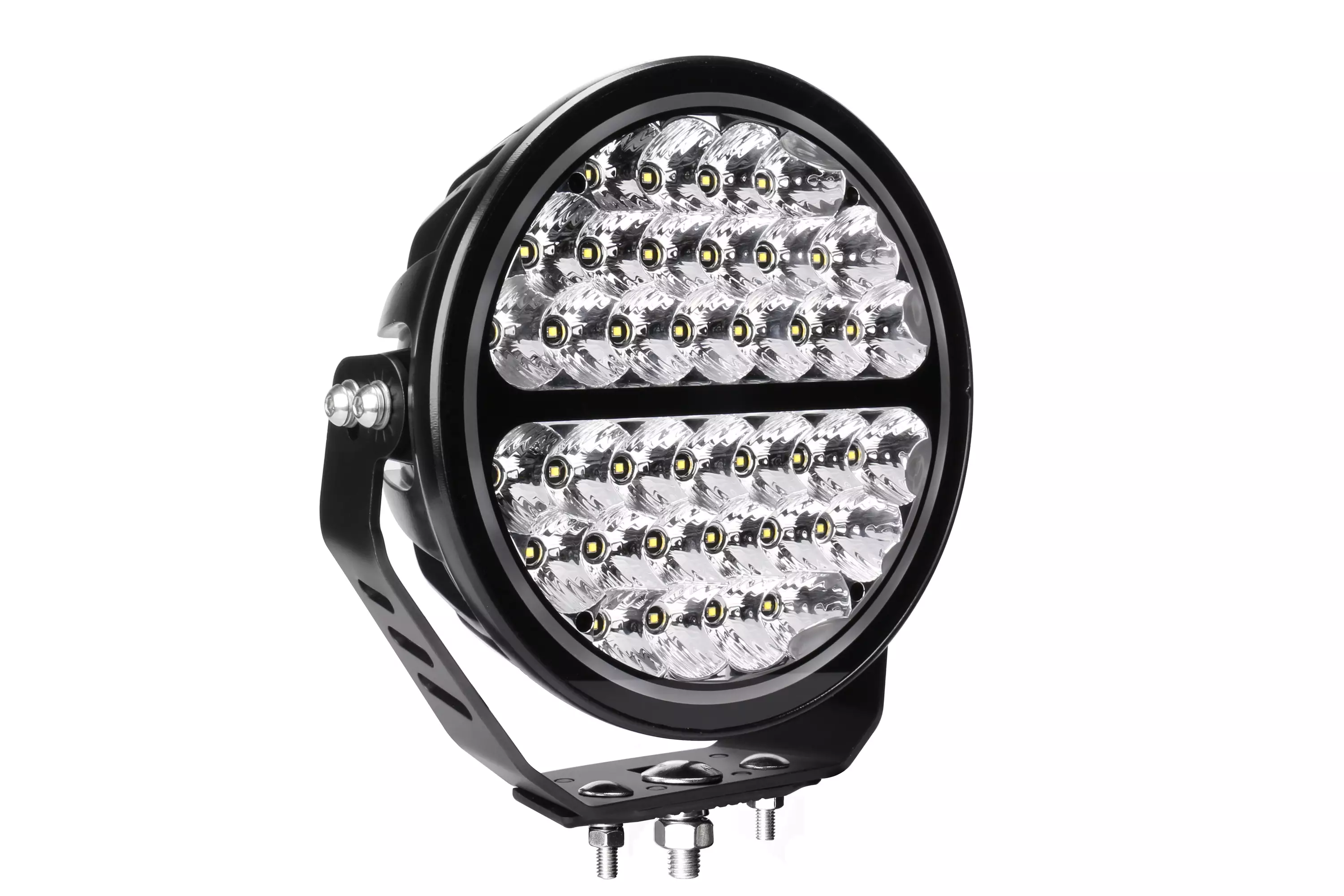 9" Pyöreä LED-lisävalo - päiväajovalolla. Uusi super tehokas modernisoitu versio tarjoaa leveämmän valokuvion ja valon reunaa kiertävän LED-päiväajovalon. Valokeilan leveys on pyöreäksi lisävaloksi leveä. Kehyksetön linssi vähentää lumen ja lian tarttumista valon pintaan ja näin pitää lisävalon puhtaampana myös huonoissa olosuhteissa. Erittäin tukeva ruostumattomasta teräksestä valmistettu kiinnike. Loistava valovalinta esim. raskaaseen kalustoon tai pakettiauton keulalle. R112, R10, IP69X ja CE-hyväksynnät. Ref 40. 170W. 34x Osram CSHP LED. Valmistajan ilmoittamat luumenit huikeat 14280lm.