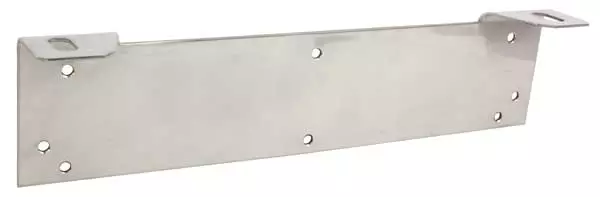 Ruostumattomasta teräksestä valmistettu kiinnitysteline lisävaloille. Asennus rekisterikilven alle. Leveys 390 mm, korkeus 90 mm