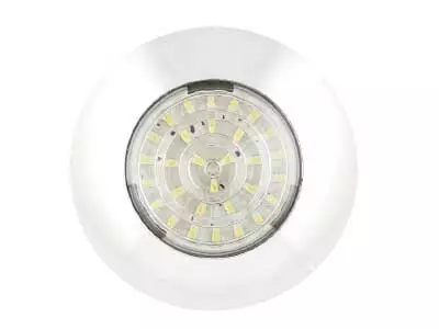 Led-sisävalo 12V katkaisimella 6 lediä, valaistu virtapainike (punainen valo). Lämmin valkoinen valo: laskennallinen teho 240lm, tehollinen 70lm. Hopeanvärinen runko, pinta-asennus kolmella...