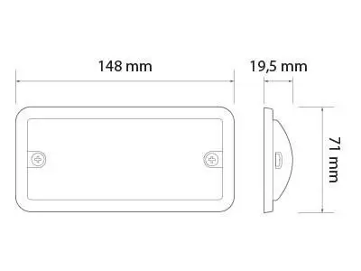 Valkoinen runko, kirkas kupumainen linssi. Pinta-asennus kahdella ruuvilla.