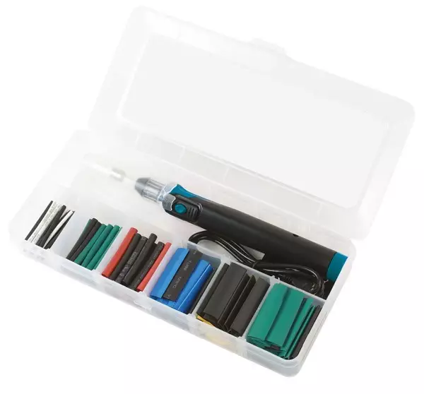 Akkutoiminen kutistussukkien kutistaja Laser Sarja sisältää: Kutistus kuumennin LED-valolla. USB-johto ja asema. Laaja sarja kutistussukkia: 2 mm, 3,5 mm, 5 mm, 7 mm, 8 mm ja 9 mm... Lue lisää