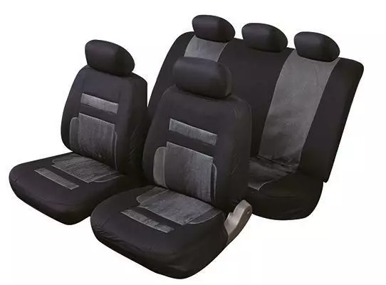 Täydellinen yleismallinen istuinsuojasarja, joka soveltuu lähes kaikkiin autoihin, myös sivuturvatyynyillä varustettuihin malleihin. Selkänojien suojissa on reiät valmiina niskatukia varten. Materiaali on kestävää polyesteriä, pehmuste polyuretaania, sivut ja takaosa venyvää polyesteriä. Sopii myös kahdessa osassa taitettavalle takaistuimen selkänojalle. HUOM! Eivät sovellu autoihin, joissa on kiinteät niskatuet tai urheilutyyppiset istuimet. Sarja sisältää: 2 kpl etupenkin suojia, 2 kpl takapenkin suojia, 5 kpl niskatuen suojia.