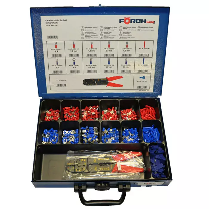 Johdonliittimet eristetyt, 526 kpl. Laaja tuotevalikoima, tilaa säästävä ja selkeä, lukko estää luotettavasti kannen tahattoman aukeamisen, tukevat metallilaatikot, jauhe-emaloitu, tarruntaystävällisin pyöristetyin muovivälikkein.