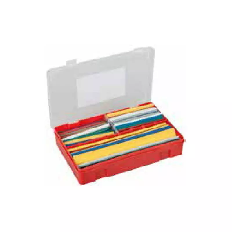 Lajitelmassa erivärisiä kutistesukkia.Kutistussuhde 2:1. Koot 2,4 mm - 25,4 mm. Yhteensä 156 kpl.