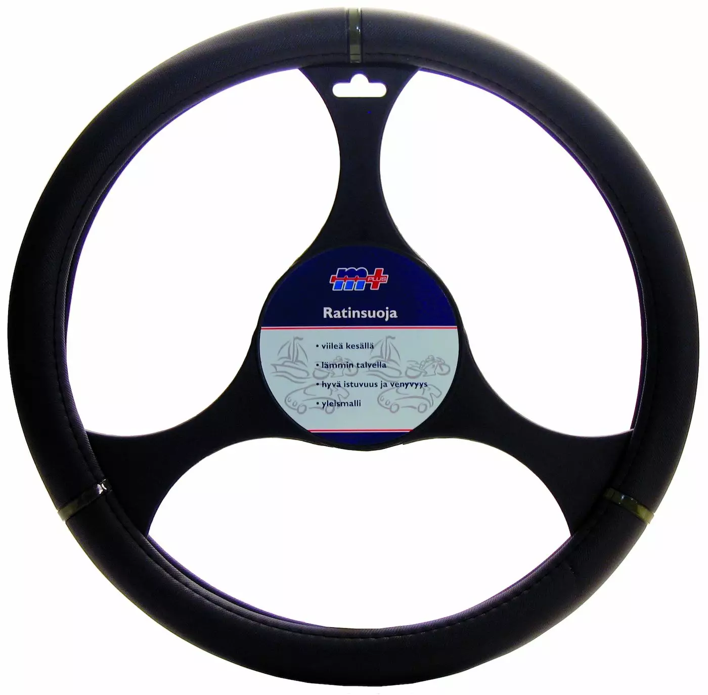 Keinonahkapinnoitettu ratinsuoja tukevalla kumipohjalla. Mukavan tuntuinen sekä kesällä, että talvella. Soveltuu rateille, joiden halkaisija on 370-390 mm. Väri musta