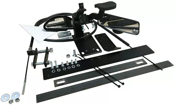 Varustepaketti omatoimiseen ajo-opetukseen. Sisältö: poljinsarja, jarruvaijeri, asennusosia, katvepeili, sisätaustapeili ja valkoinen magneettikolmio. Sisältää valokuvin havainnollistetun suomen- ja ruotsinkielisen asennusohjeen. Asentaminen edellyttää kohtalaista asennustaitoa. Vaijerin pituus 180 cm, kuori 160 cm.
