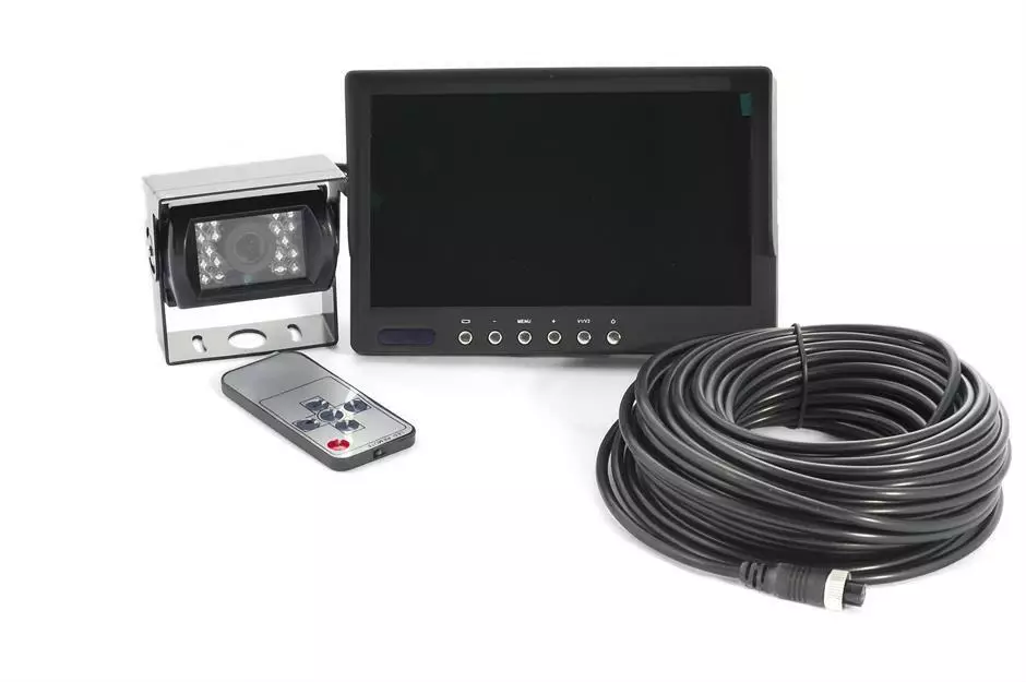 -7 ” TFT-LCD monitori, aurinkolippa, kaukosäädin ja kiinnitysjalka