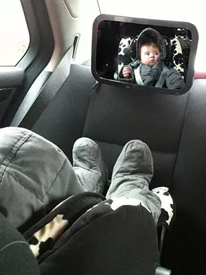 Peilin avulla näet takana lastenistuimella selkä menosuuntaan päin istuvan lapsen kääntämättä päätäsi ajon aikana. Helppo asentaa: kiinnitä peili pidikkeen ja kiristysnuppien avulla takapenkin niskatukeen ja käännä parhaan näkyvyyden varmistamiseksi. Peilin koko 255 x 175 mm.
