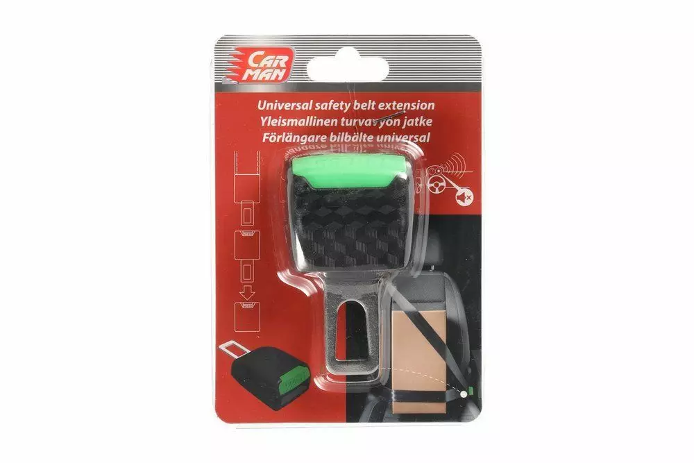 Yleismallinen turvavyön jatke. Voidaan asettaa minkä tahansa auton turvavyön lukkoon esimerkiksi estämään turvavyöhälytyksen aktivoituminen kun penkillä kuljetetaan raskasta tavaraa. Jatke tuo myös hieman lisäpituutta vyökiinnitykseen sekä nostaa kiinnityspistettä kun penkillä kuljetetaan suuria tavaroita. Jatke täytyy irrottaa henkilökuljetuksessa.