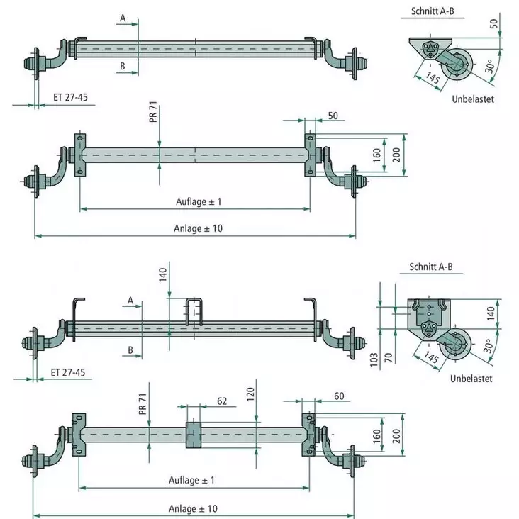 - Tukijalat ja nurkkatuet vaunuun