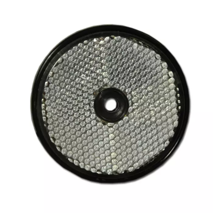 Heijastin kirkas pyöreä. Koko 60mm. Kiinitys keskeltä. Eteenpäin.