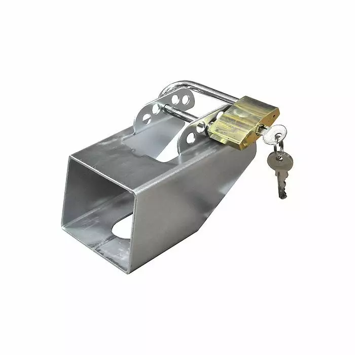 Perävaunun aisalukko, joka sopii yleisimpiin perävaunuihin ja venetrailereihin. Lukon kytkeminen on helppoa ja nopeaa. Pakkaus sisältää riippulukon.