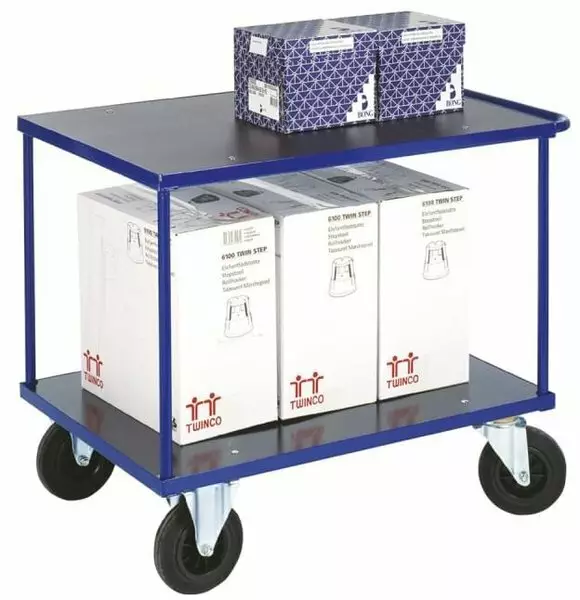 Monikäyttöinen lavavaunu sisä- ja ulkokäyttöön. Tasot kovaa kulutusta kestävää 12 mm fenolihartsivaneria, runko epoksilakattua terästä. Vaunussa kaksi kiinteää ja kaksi kääntyvää umpikumipyörää, mitoiltaan 200 x 50 mm. Ylätason korkeus maasta 870 mm ja tasojen mitat 1000 x 700 mm. Kantavuus 500 kg ja paino 39 kg. Helppo koota. Erinomainen hinta-laatusuhde!
