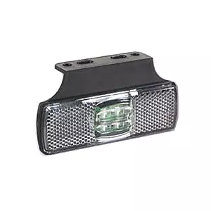Valkoinen led äärivalo 12-30V. Valo kiinnitetty asentamista helpottavaan muovikiinnikkeeseen.
