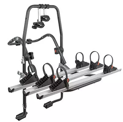 Takaluukkuun hihnoilla kiinnitettävä teräsvalmisteinen teline, jolla voi kuljettaa kolmea polkupyörää. Soveltuu useampiin HB- STW- ja SUV-autoihin ilman vetokoukkua. Polkupyörän maksimipaino... Lue lisää
