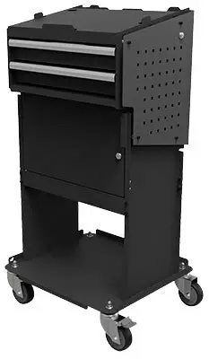 Helposti liikuteltava työpistevaunu diagnostiikka- ym. laitteille. Päällä kalteva taso kannettavalle tietokoneelle. Alla kaksi lukittavaa vetolaatikkoa ja lukittava kaappi. Kaikki neljä pyörää kääntyviä, etummaiset varustettu jarruilla. Vaunun kyljessä reikälevyseinä.