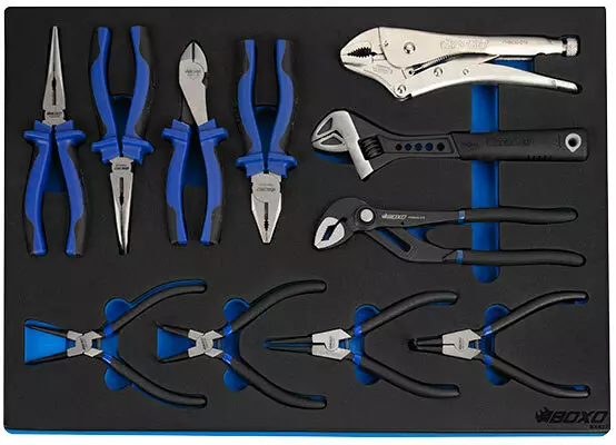 11-Osainen Boxon työkaluvaunuihin sopiva pihtisarja sisältää: