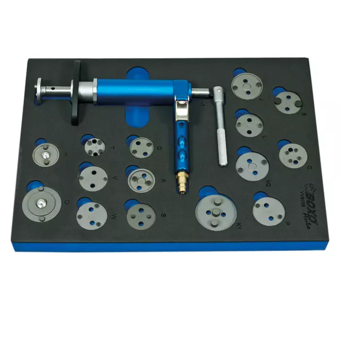 Jarrusatulan männän kääntötyökalusarja. Boxo. 16-osainen paineilmakäyttöinen sarja kattaa useimmat automerkit. Boxo työkaluvaunuihin sopiva moduli, toimitukseen sisältyy myös muovinen... Lue lisää