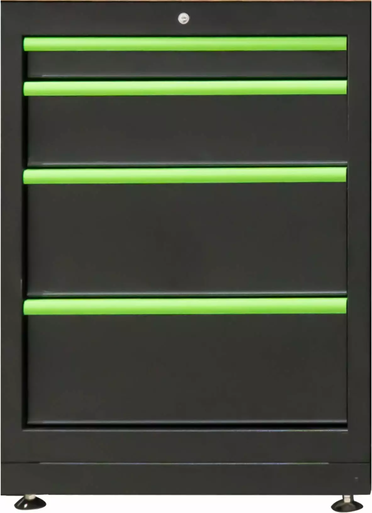 Alakaappi neljällä vetolaatikolla työasemakokoonpanoon. Vetolaatikot: 1x 567x408x58mm, 3x 567x408x216mm . Alakaapin mitat: 900-950x500x680mm.